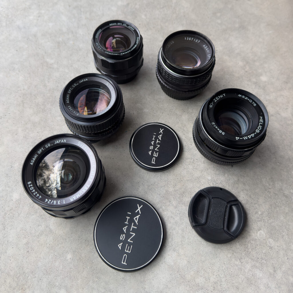 Liking what I saw, I decided to expand the experiment and pad out my vintage lens collection with a selection of wide to standard prime lenses. Three Takumars, the SMC SMC 24mm F3.5, SMC 28mm F3.5, and SMC 50mm F1.4, as well as a HELIOS 44M-4 58mm F2.